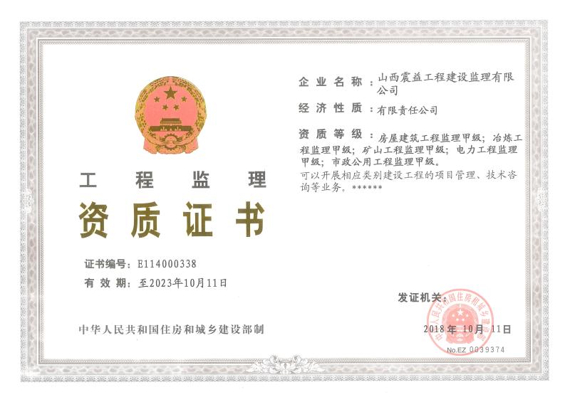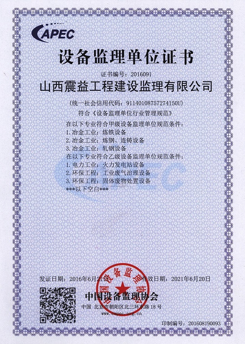 山西震益工程建設監(jiān)理有限公司【原太原鋼鐵(集團)工程建設監(jiān)理有限公司】成立于 1998年4月,注冊資金 600 萬元,是******批準的具有甲級執(zhí)業(yè)資質的綜合性工程咨詢服務企業(yè),具有冶煉工程、電力工程、礦山工程、房屋建筑工程、市政公用工程等5個工程監(jiān)理甲級資質和設備監(jiān)理甲級資質。主要業(yè)務涉及冶金、房屋建筑、礦山、電力、市政、機械、環(huán)保等領域的工程建設監(jiān)理、設備監(jiān)理、工程咨詢、造價咨詢、檢測試驗等。公司建立了質量ISO9001:2015標準、環(huán)境ISO14001:2015標準、職業(yè)健康******GB/T28001-2011 idt OHSAS 1800:2007標準 “三標一體”管理體系,是中國設備監(jiān)理協(xié)會常務理事、中國冶金建設監(jiān)理協(xié)會常務理事和山西省監(jiān)理協(xié)會副會長單位。